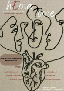 Pendant un cours d’improvisation, Emy se retrouve face à elle-même et s’interroge sur sa bisexualité, ses amours et ses amitiés. HEmaTome, ce sont les bleus au coeur et à l’âme d’Emy, jeune femme déchirée entre désir et peur, amour et rejet, choix imposés et envies refusées. Chaque instant de sa vie devient un champ de tension : le doute la ronge, la frustration la traverse, et pourtant elle continue de chercher sa voix, son langage, sa manière d’être au monde.